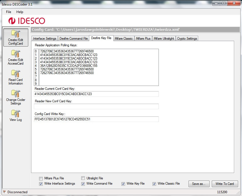 Stosowanie DESFire wiąże się z zarządzaniem kluczami bezpieczeństwa. To zasadnicza cecha tego standardu. Wielu integratorów oraz instalatorów samodzielnie zarządza kluczami szyfrującymi, jak również programuje czytniki i transpondery. Dla tych, którzy chcą zadbać o bezpieczeństwo, Idesco ma rozwiązanie o nazwie DESCoder. Jest to narzędzie do programowania kart konfiguracyjnych DESFire dla czytników 8 CD 2.0 oraz kompatybilnych transponderów.